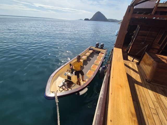 Täglich werden bis zu vier Tauchgänge angeboten - einschließlich Nachttauchgang. Die Reiseroute und Tauchplanung kann individuell auf die Gruppe abgestimmt werden. Getaucht wird in der Regel vom Beiboot aus, dass mit Einzelsitzen, Flaschenhalterungen und mit starken Motoren ausgestattet ist und Euch punktgenau am Tauchplatz oder in die Strömung absetzen und aufsammeln kann. Das ermöglicht flexible Ein- und Ausstiege sowie kurze Wege, auch bei Strömungstauchgängen oder abgelegenen Spots. Auf dem Taucherdeck steht zum An- und Ablegen und Spülen der Ausrüstung und Kameras ausreichend Platz zu Verfügung, ebenso eine Warmwasserdusche.