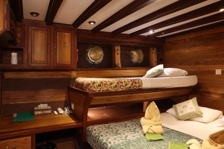 Mit nur drei Kabinen bietet die MS Wellenreng Platz für bis zu sechs Gäste (maximal neun mit Kindern). Alle Kabine befinden sich im Unterdeck und verfügt über eine individuell einstellbare Klimaanlage, hochwertige Bettwäsche und eigenes Badezimmer mit Warmwasser. Toilettenartikel und Bademantel stehen kostenfrei zur Verfügung. Die Kabinen sind mit Doppelbetten und einem zusätzlichen Einzelbett ausgestattet. Die Bullaugen lassen Tageslicht herein und ein Safe zur Aufbewahrung von Wertsachen rundet das Angebot ab.